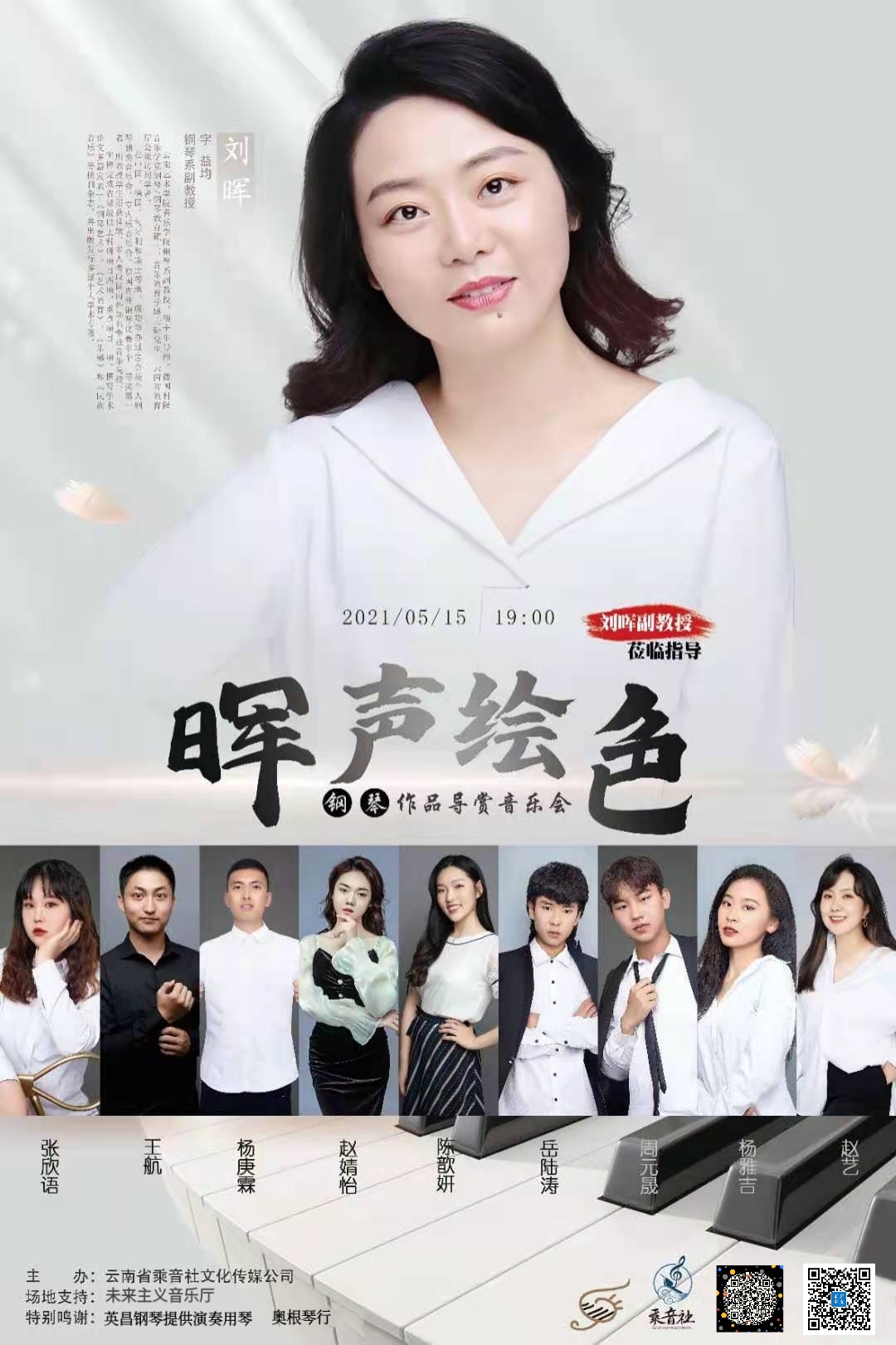 由云南省钢琴协会指导:由云南未来主义音乐中心共同协办的晖声绘色钢琴作品导赏音乐会圆满结束。云南省钢琴协会感谢为本次音乐会付出努力的所有单位和个人,感谢刘辉教授的辛勤付出,为云南省的钢琴教育事业,做出了自己的贡献。